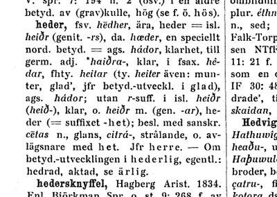 Ett antal andra termer som börjar med "heders-" går dock att hitta i Svensk Ordbok: hedersdoktor, hedersman, hedersplats, hedersmedlem, hedersledamot, hederspris, hederslegion, hedersomnämnande, hedersord, och så vidare.... Det lustiga med dessa ord är att prefixet "heder" ger ett positivt värde även till neutrala ord som "plats", "medlem", "pris", "man", "ord". Det ligger därför nära tillhands, särskilt om man gör en etymologisk spårning, att tänka att "heders-nånting" är något som man vill vara, att det är något positivt och ärofullt som smittar av sig på det ord som kopplas ihop med det. Frågan är om det positiva inflytande ordet "heder" har på neutrala termer också fungerar när det förknippas med en negativ term, som "mord" t ex. Säger man "hedersmord" så gör man det inte med ett leende på läpparna. I det här fallet får ordet "heder" en helt annan betydelse. Det är det negativa i "mord" som smittar av sig på "heder".